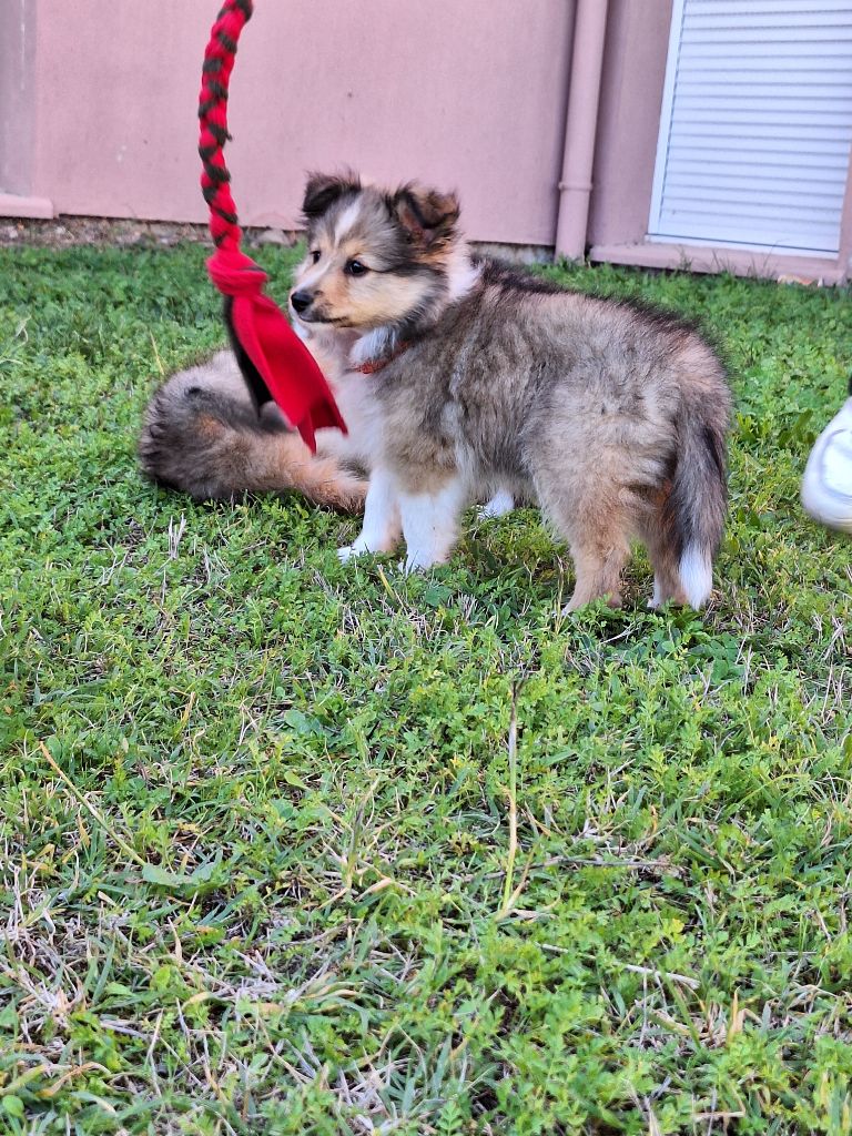 Aimie, petite femelle intrépide. Elle n'a peur de rien. Elle est déjà active auprès des enfants.